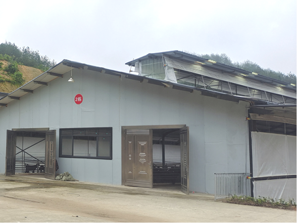 兩層開放式羊舍: 二層養(yǎng)羊,一層糞污發(fā)酵間,合理利用空間,解決糞污零排放難題,將糞污生產(chǎn)資源化利用。